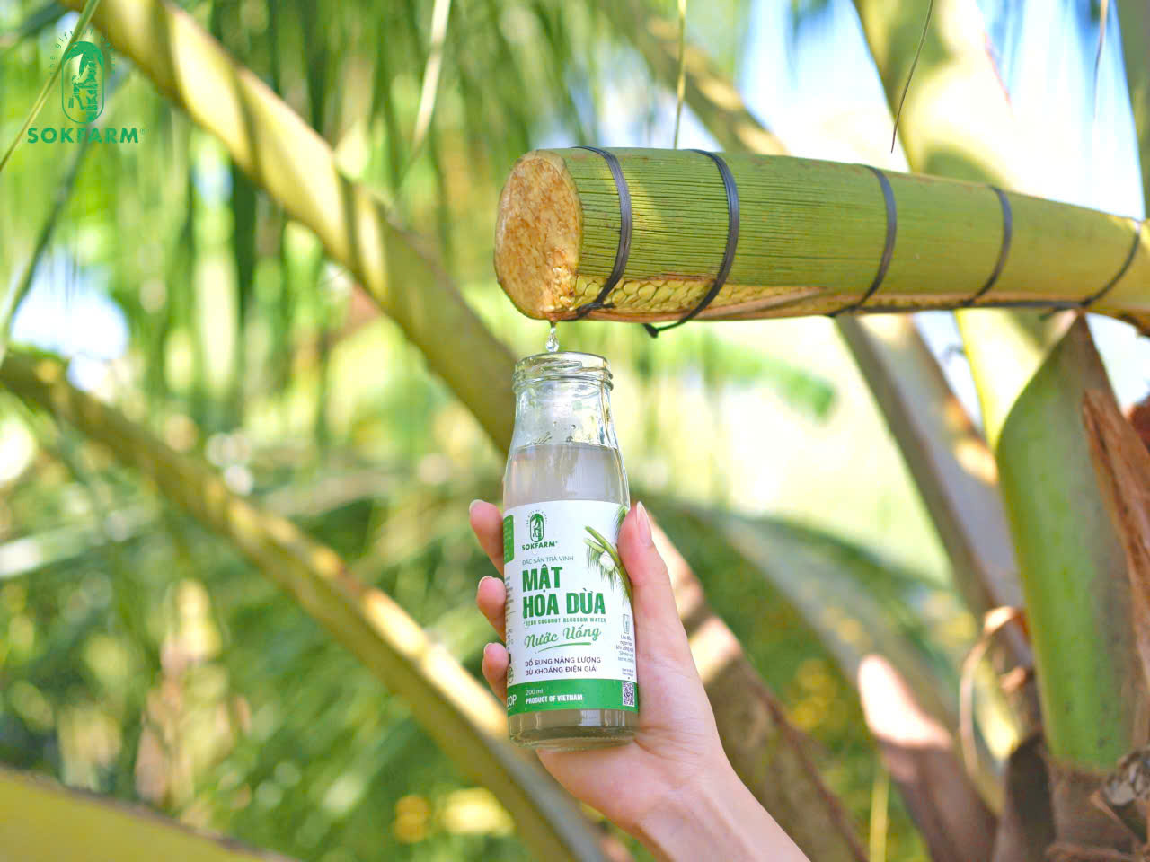 Tại nhà máy Sokfarm (đạt tiêu chuẩn ISO22000:2018 xuất khẩu Mỹ, Hà Lan, Đức, Nhật Bản), các sản phẩm từ mật hoa dừa Sokfarm được tạo ra như: Mật hoa dừa tươi, Mật hoa dừa cô đặc, Đường hoa dừa Organic, Mật hoa dừa lên men, Giấm hoa dừa Organic.
